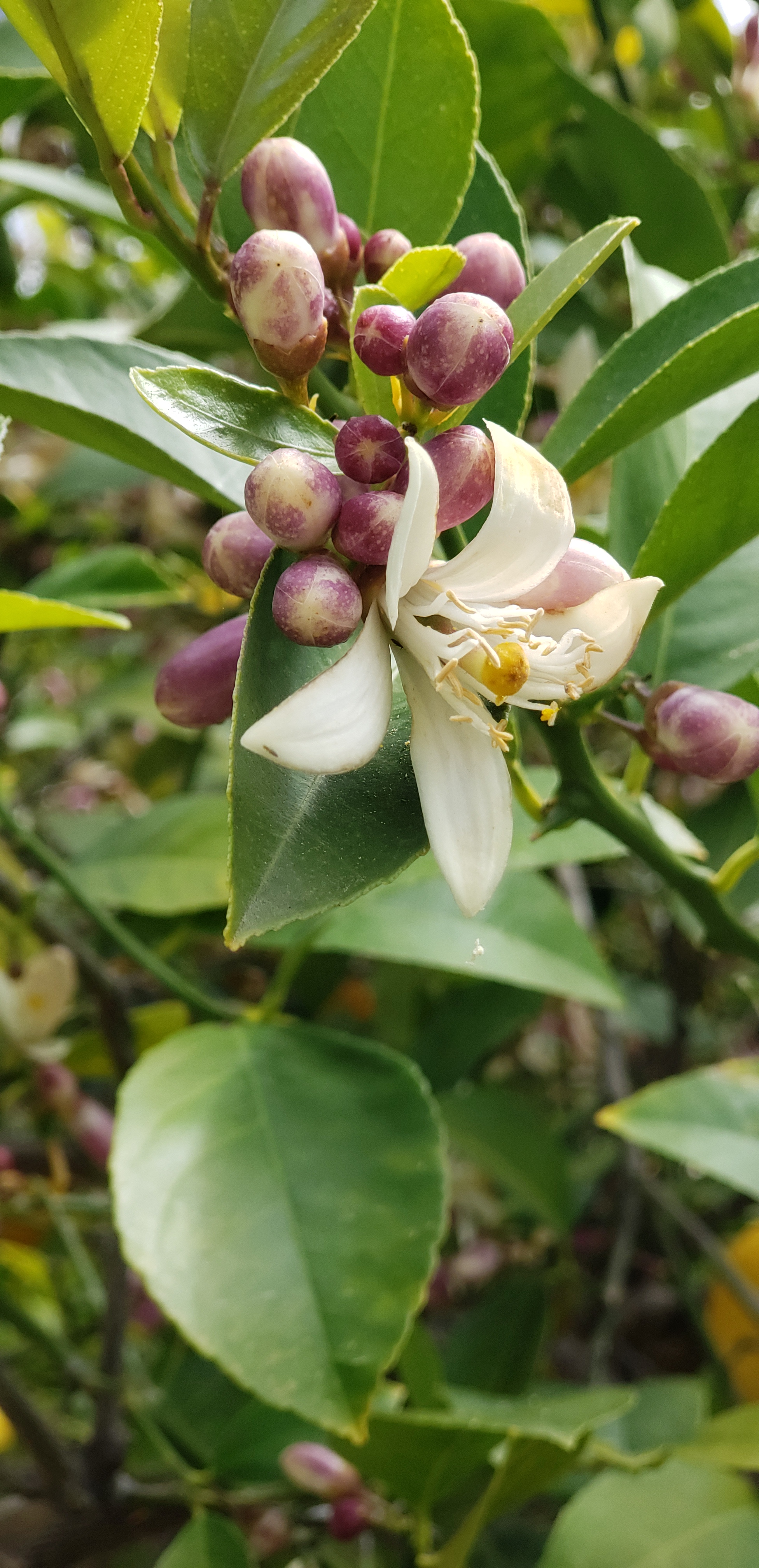 This lemon tree is budding while holding it’s own fruit still. The lemons are delicious and the blossoms smell delightful. I get a couple of large bucketfuls to not only make lemonade but to made lemon curd from them, along with anything else in a recipe. A lemon garlic something sounds good tonight.