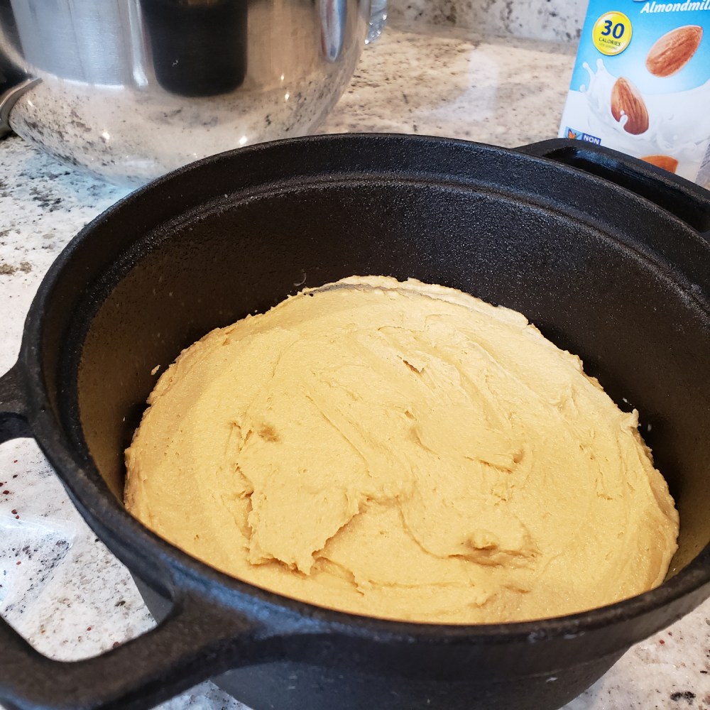 Pan: I have learned that preparing the pan is more than half of the success of baking. So do it. Prepare the pan by lining with parchment and then spray with baking spray. If you are not willing to use the spray at least use the parchment and vegetable oil. I find using parchment on the bottom then spraying a bit of baking spray works beautifully in the cast iron skillet or for any cake pan.