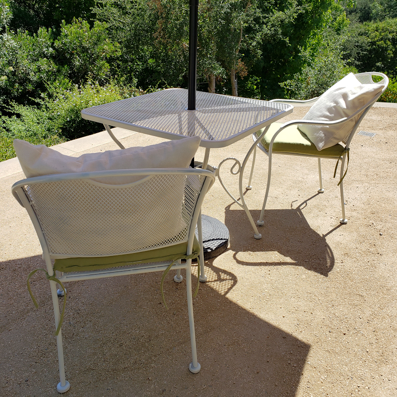 This little table set was ready to either throw or go into the spray paint waiting line. I am glad it ended up in line. From chipped black to off white it changed in just a day and was ready to pull up a seat and relax.