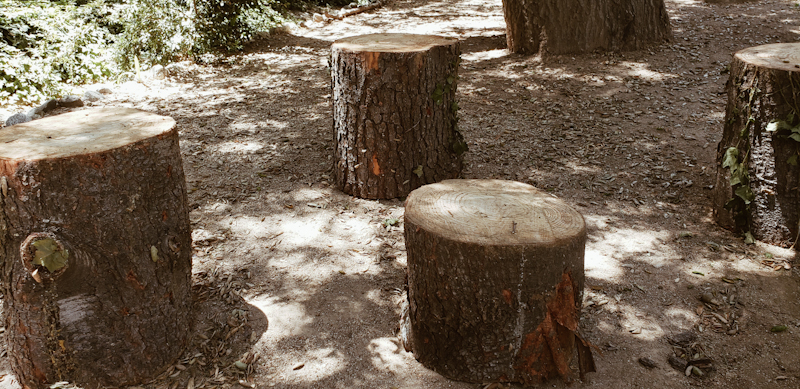 2. We also had a bunch of tree stumps that we used as seats in our garden….