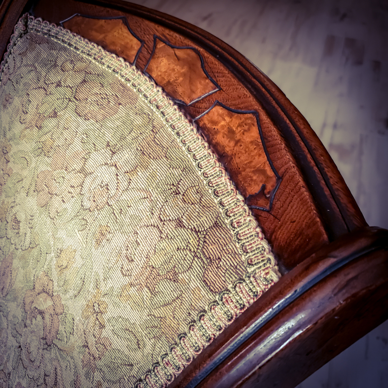 After doing some research I find that it is a sewing rocker. Some were folding rockers and this is not. It is very strong and doesn’t make creaky sounds, so it is in great condition for being as old as it is. Most of my furniture is antique or I have pieces of antiques and work around them with modern twists. I can’t seem to hide from what I love to live in and look at. Old pieces have a quality that new ones just don’t have. Besides, my thinking is they have lasted, in some cases, hundreds of years and the new ones last only 6 months. We have become a throw away society which is shameful for these beautiful pieces and when something like this comes to me, it is to be savoured. So I stick with the solid foundations of craftsmanship and history of the item.