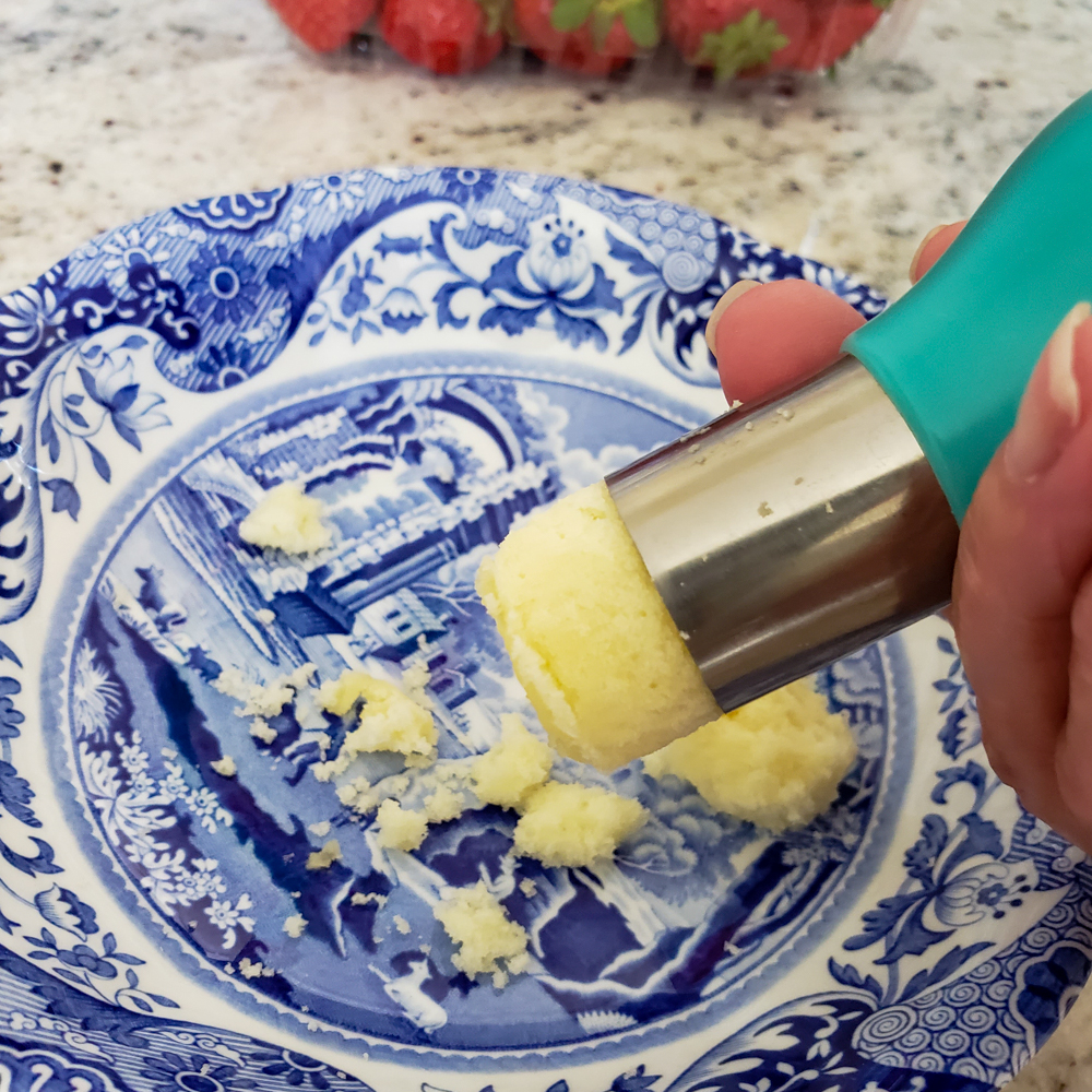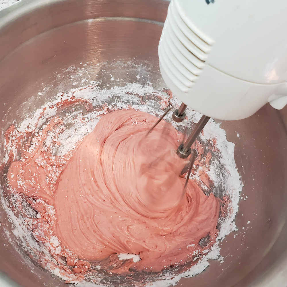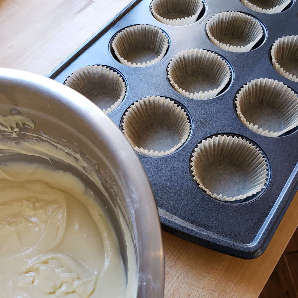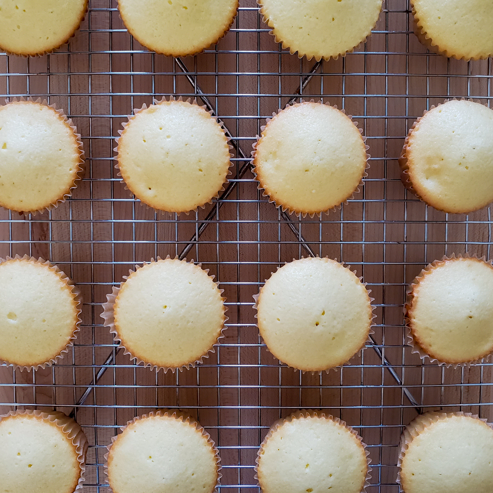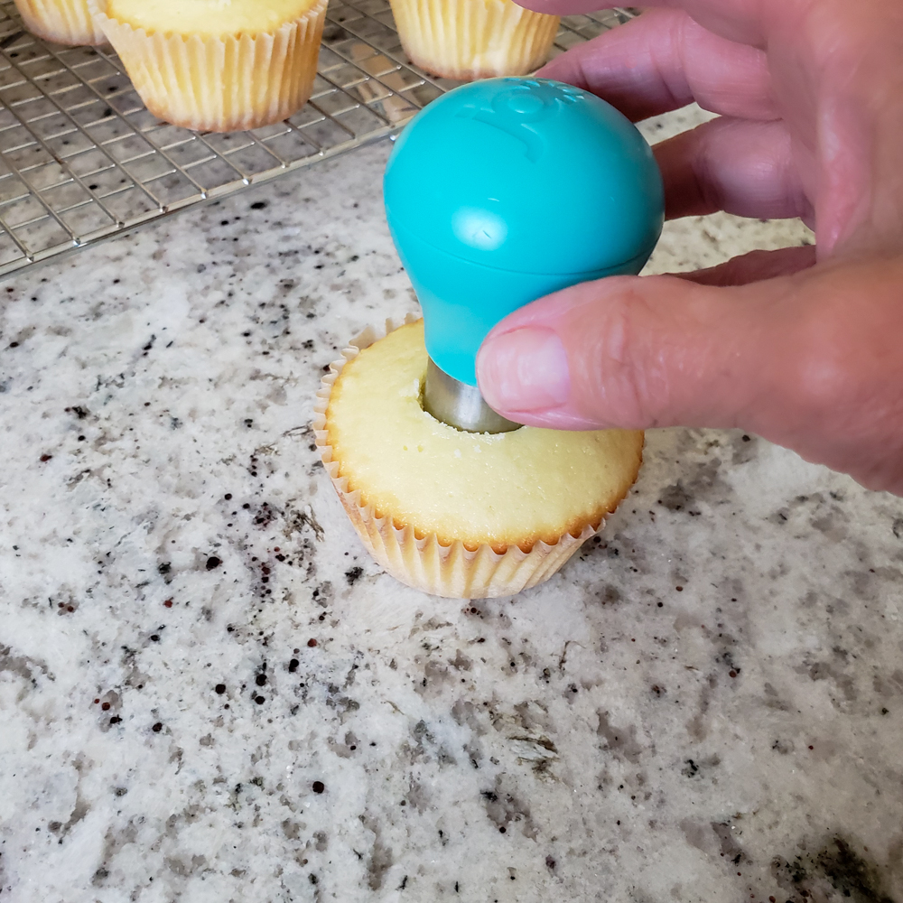 Sunday Share day brings to you a great cupcake recipe that holds a strawberry filling perfectly. By simply adding some praline liquor and finely chopped basil the flavor level took it up a a few notches but you can omit those flavors and it is still a very tasty strawberry cupcake.
