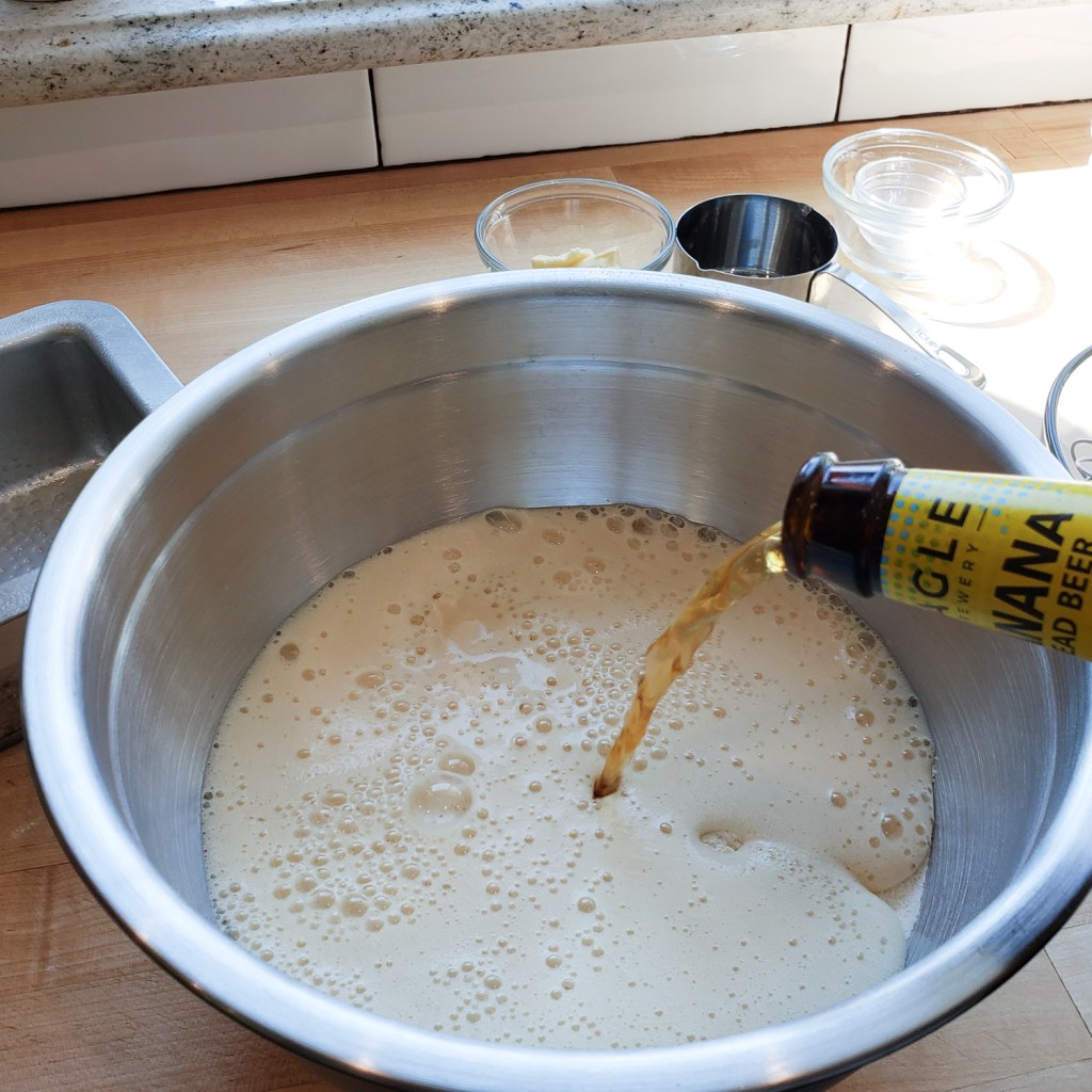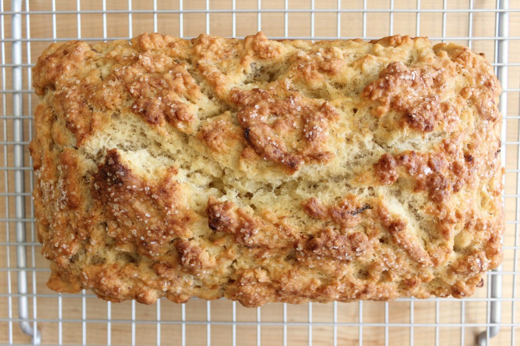 Gerald Norman is the author of a recipe which I adapted this from. It is so good that you can change the flavors of the bread to match the beer as I did here. Basically, this bread has a buttery crunchy top which is mouth watering and if you don’t like the crunch you can mix in the butter for a softer loaf.