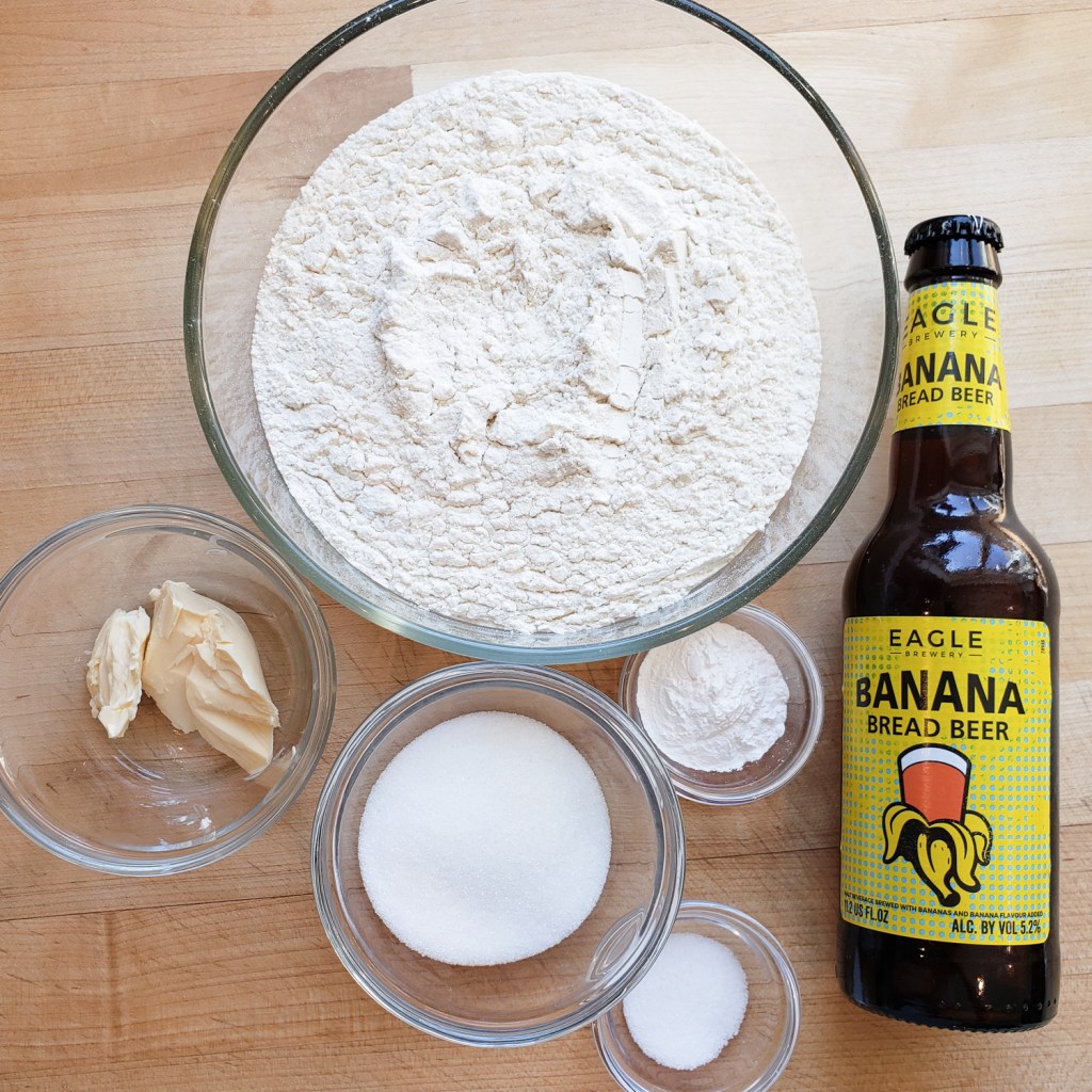 Using a Banana beer, my add-in for this recipe was of course, banana. With a sprinkling of Turbinado sugar and Kosher salt mix dabbled on the top, rounded out the flavors. I paired it with my trusty basic Tomato Soup Recipe and you can click on the link below to get it. It is perfect with this bread.