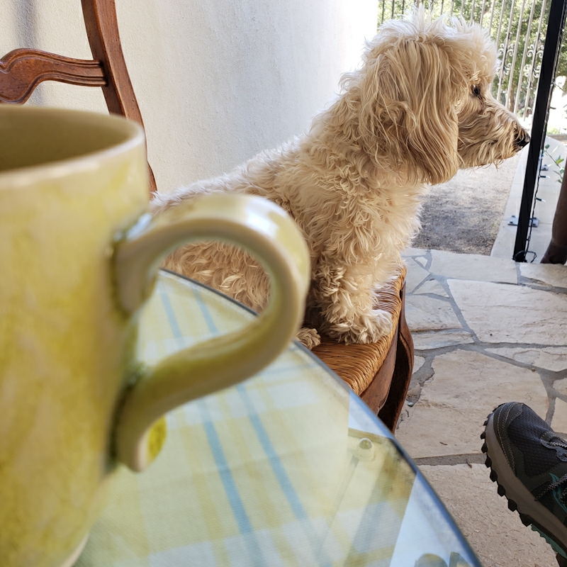 Pulling up a seat and hanging out on days like this are nice. Murray loves the lizard action here and after planting more flowers a good cup of Joe is always nice to keep me going.