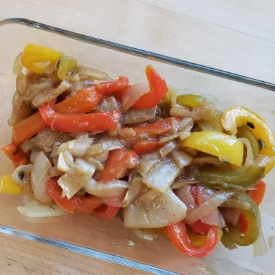 The simplest of ingredients can make the best-tasting condiment or side dish. Here is another easy recipe for cooked balsamic peppers and onions. From hot dogs to steaks to salads this is flavorful enough for any meal. I like to eat it all by itself and since it is quick I can keep a container of it in the refrigerator for a few days snacking on it.