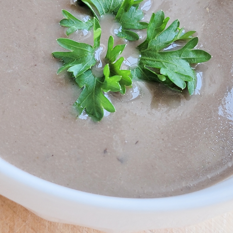 After a get together with friends last week the refrigerator had some left overs that needed to be cooked up. Since mushrooms go fast making a good soup was the ticket for a snack or meal for a few days worth. I love to make this soup because it is filling and made with no cream, just a couple of tablespoons of butter (which can be omitted) but I personally like the taste it brings to this soup.