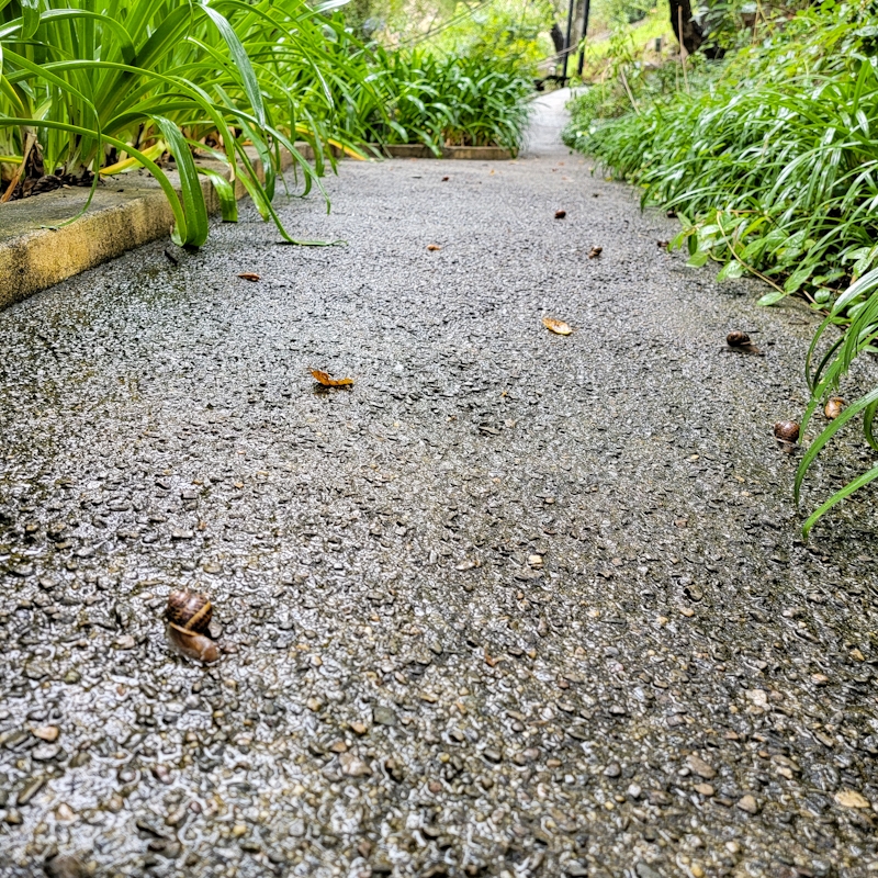 Getting on one of the paths is like playing hopscotch. One foot here and one foot there or else there is a disastrous *crunch*… and I can’t stand that certain crunch. I am sure it is probably why I do not like Escargot…