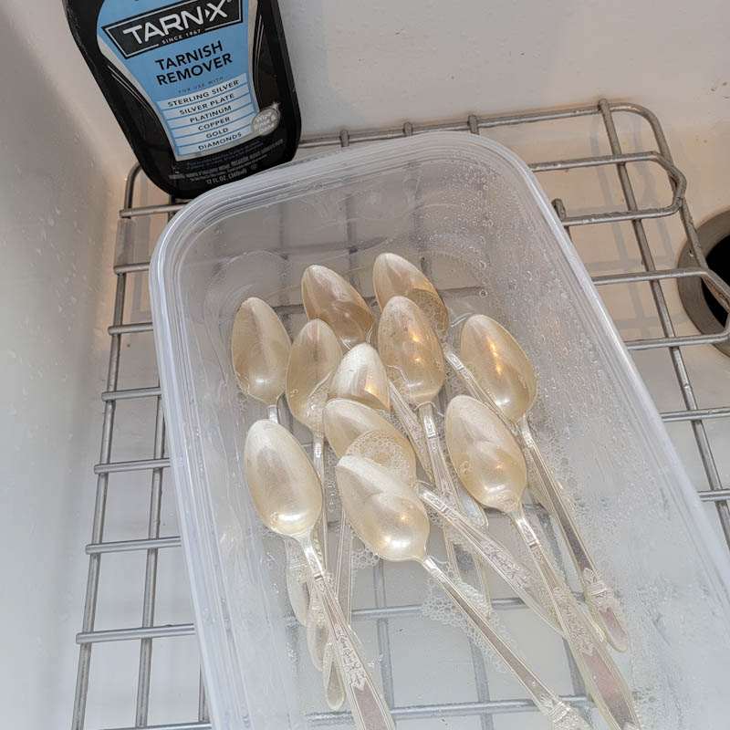 Using a liquid tarnish remover makes things so easy. This is an essential here at Sheckyville.