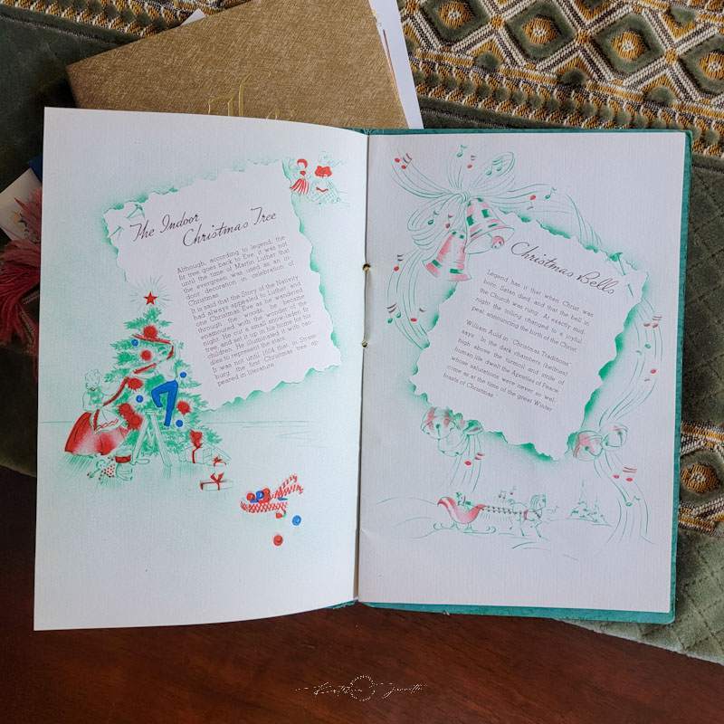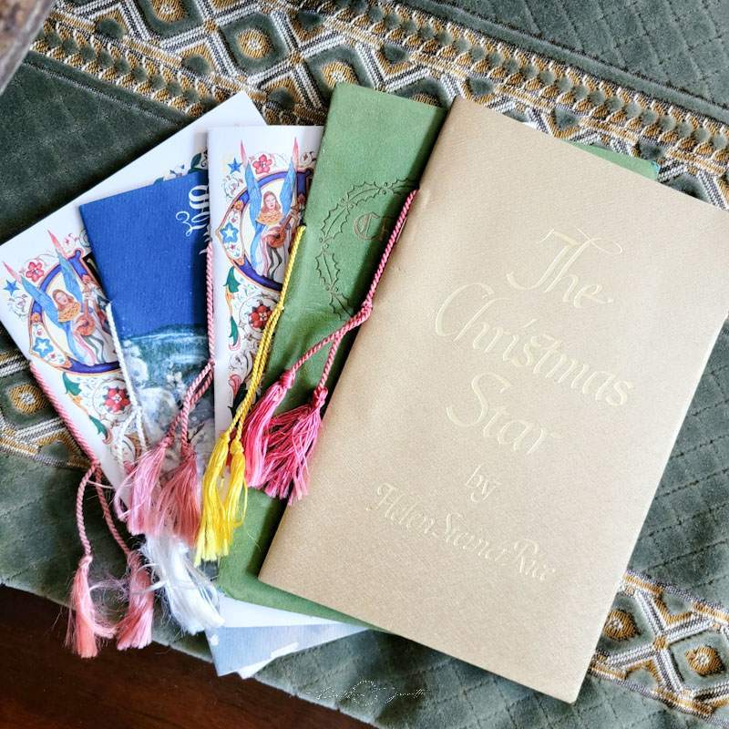 The tea cup went to the table in the family room. This is where some old family Christmas books sent from her Grandparents are. They are fun to read and beautiful in their old vintage bounds.