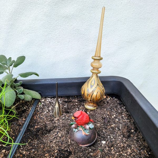 It is hard to get rid of ornaments that break if they still have a pretty to it, so the ornaments have a special place to rest and still can be seen until eventually they get broken up for a mosaic or something. Sometimes, they just get tossed in the trash. The count is only 3 so far…
