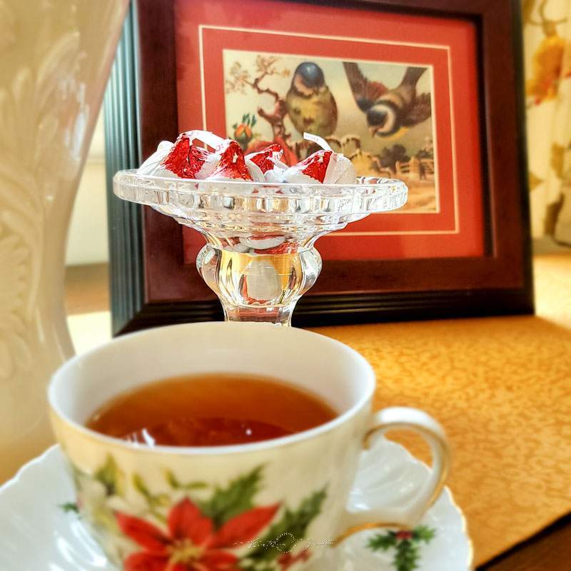 It is the end of the year and the end of this year’s Tea Walk. This time we are tea touring in the house because it is wet and muddy and cold outside at this writing. So Mrs. Shecky is taking you around for the last of the holiday decorations as a little tea tour.
