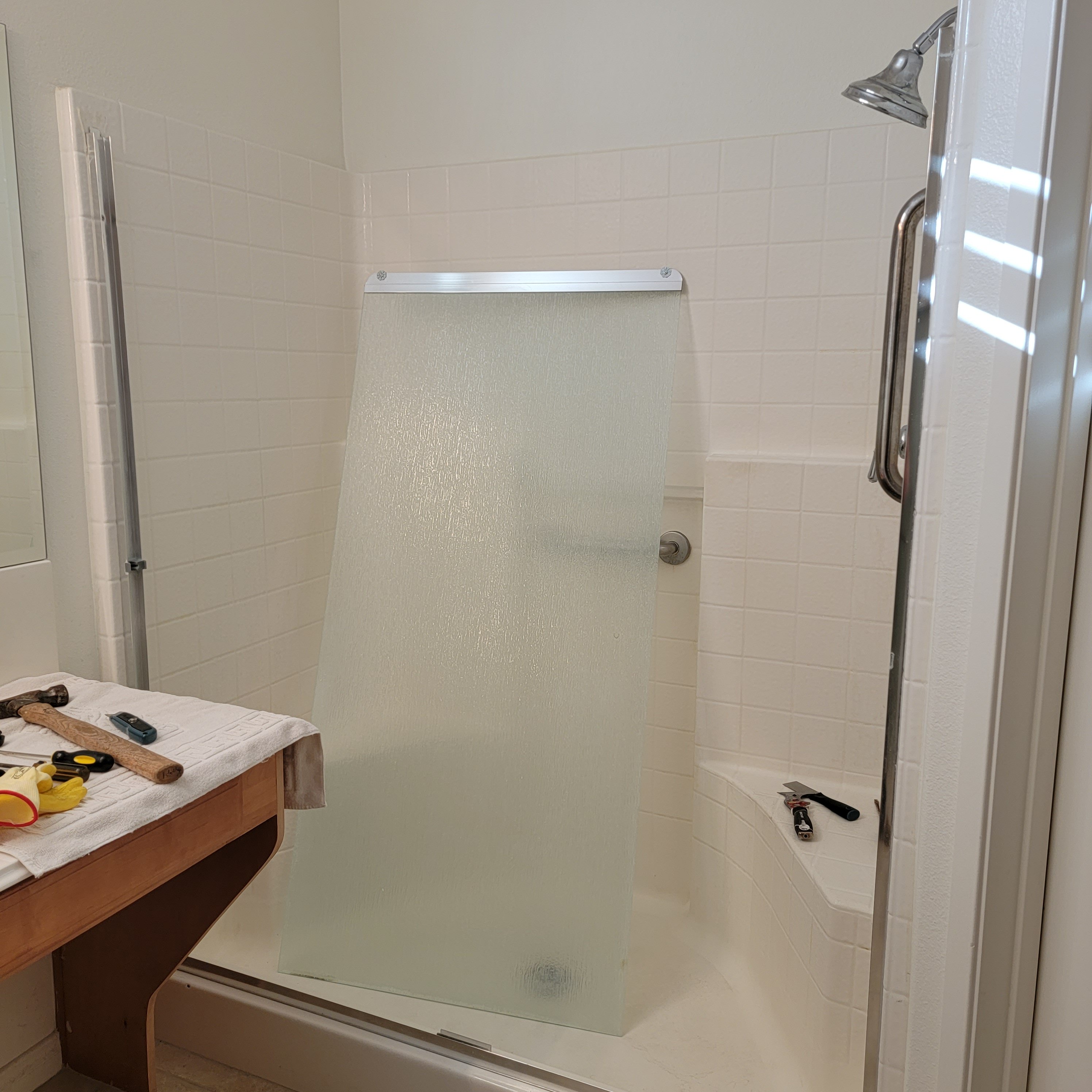 It wasn’t easy, but doable. One of the doors got stuck on the run above and I had to take that off first with a balancing act. Luckily these doors are tempered and just shattered in bits, but some older ones may not be. It was a mess indeed.