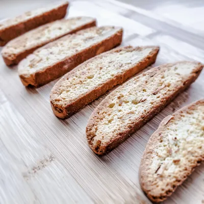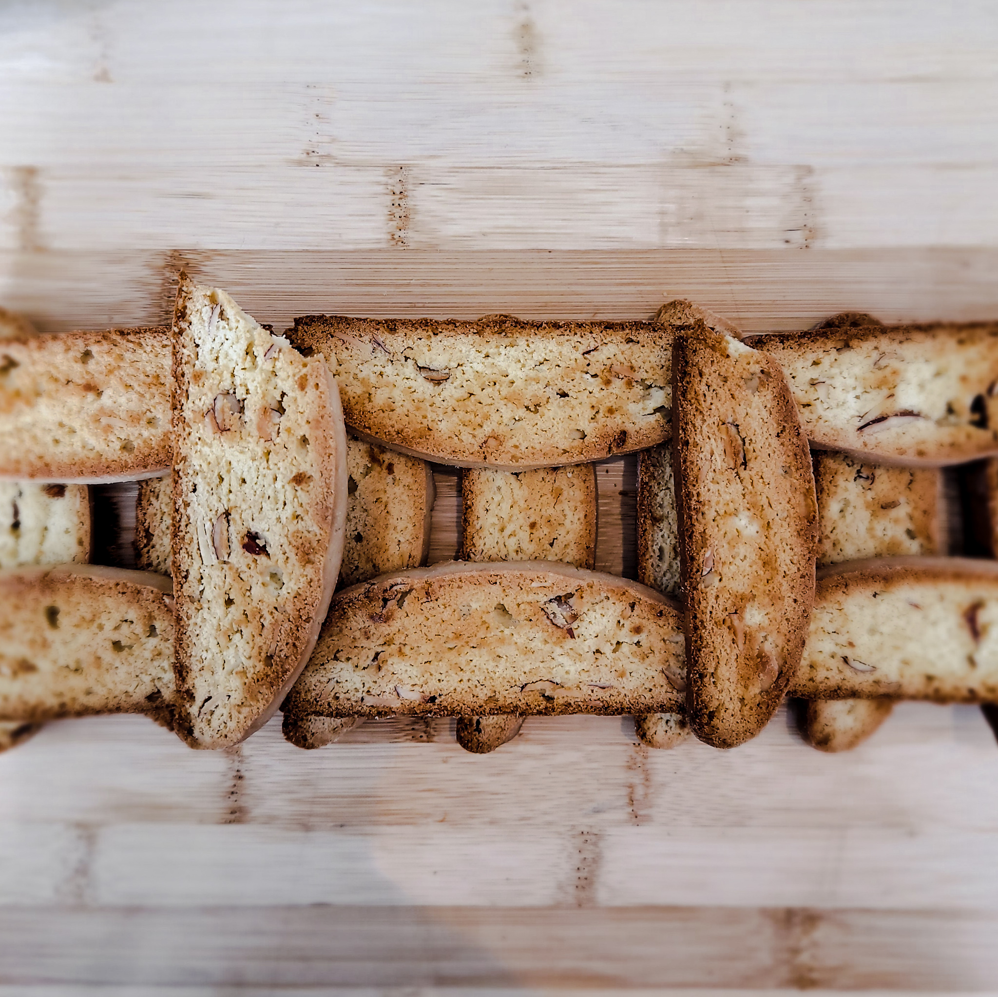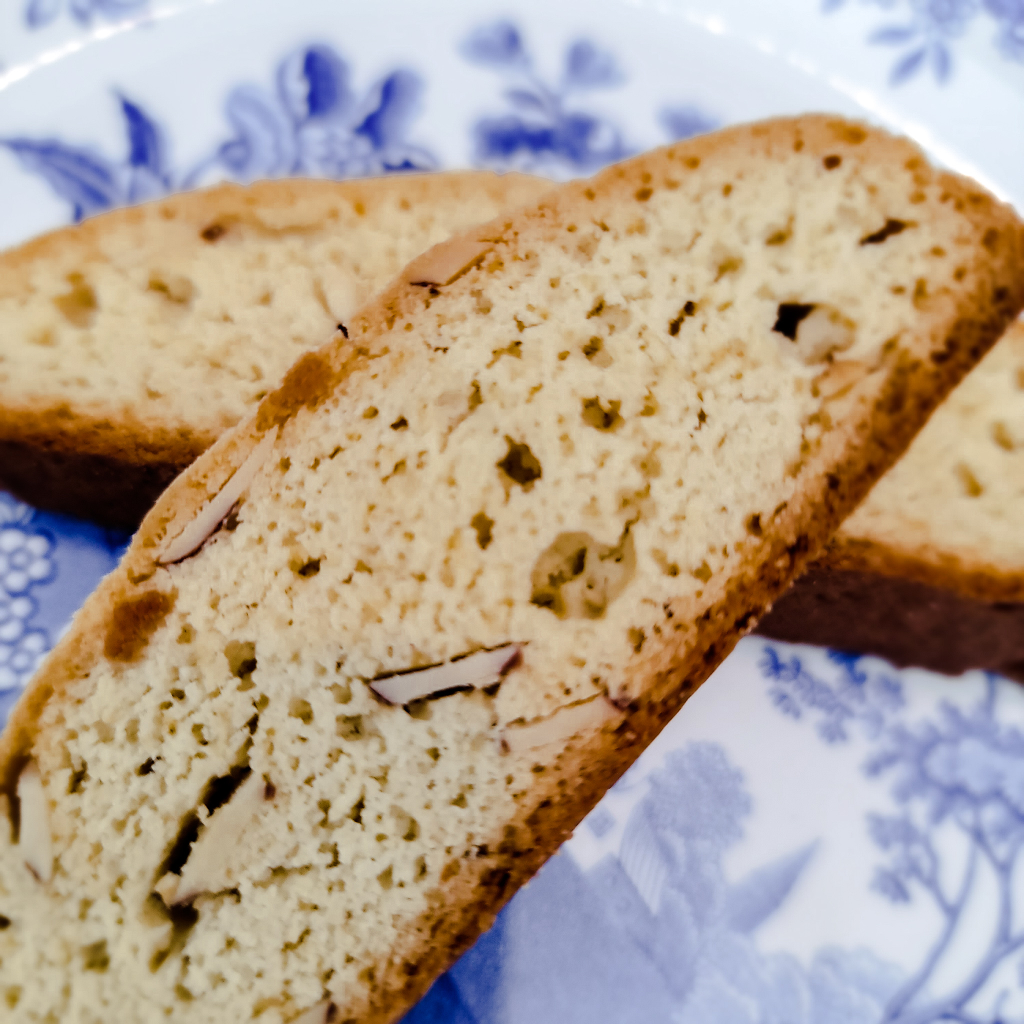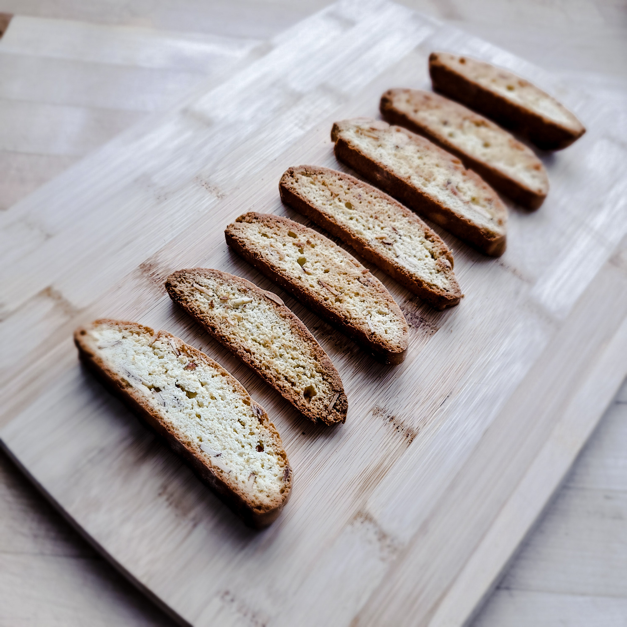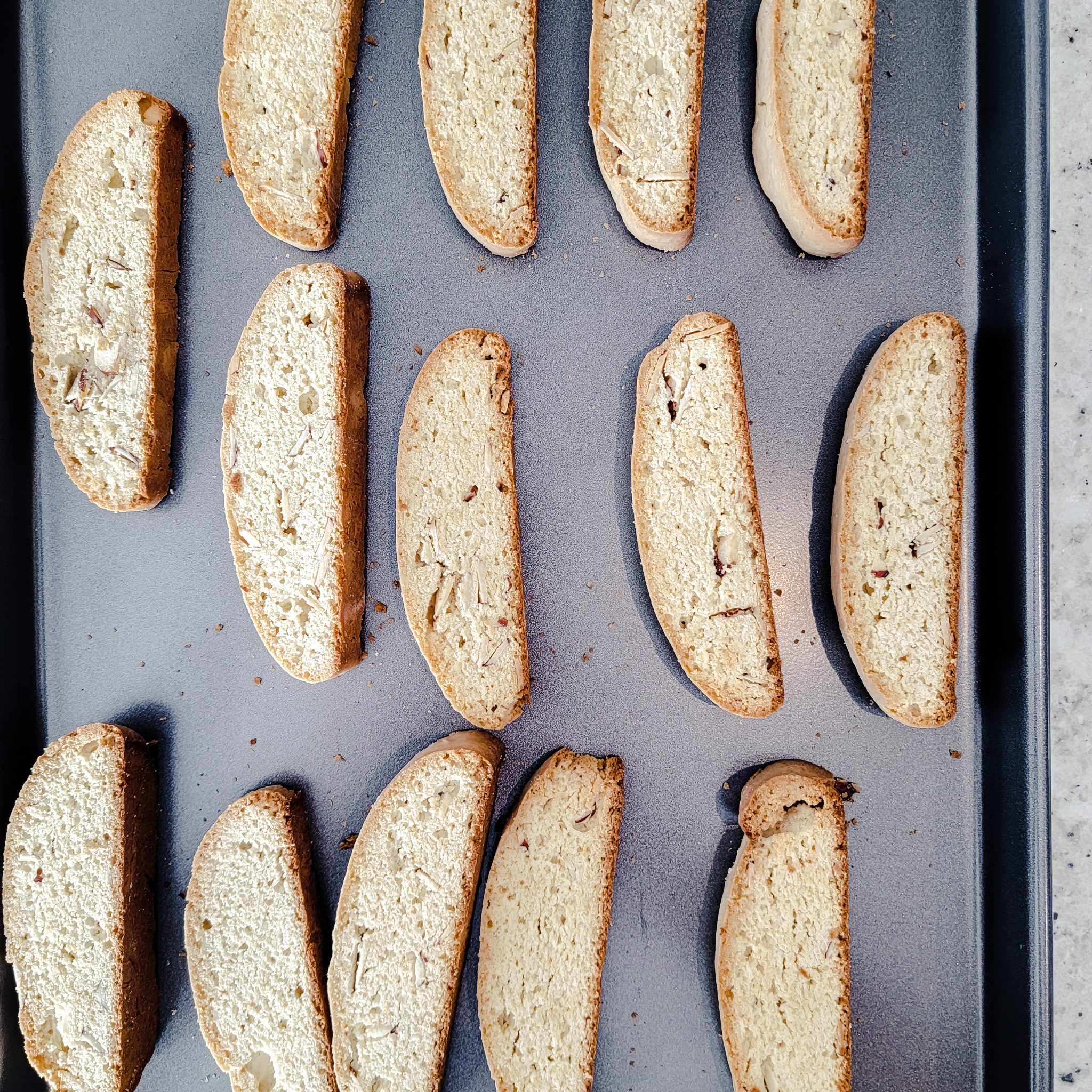 Remember these are twice baked and can get a little crumbly. They are a dry cookie.Cut carefully through the nuts. If you don’t add nuts this is easier but these are still meant to be a drier cookie. Take your time, sing a song.Depending on your slicing you can get a good 30 cookies or more from this recipe. Watch your bake via your oven’s timing.This recipe is easier than it looks in writing. Do a few versions with different additions such as semi sweets or a different nut or cranberries and raisins. Change your extract to almond or even maple! Why not… your kitchen will be dirty anyway! Just watch your golden brown – you got this!These are great for a good week in an airtight container and are delicious with coffee and tea. Because of that, these are great ‘make ahead’ snacks for that unexpected coffee or tea person. *Nuts: you know your body better. Don’t use them if you don’t like or are allergic. Substitute or not – it is all up to you. This is an easy recipe for that choice.