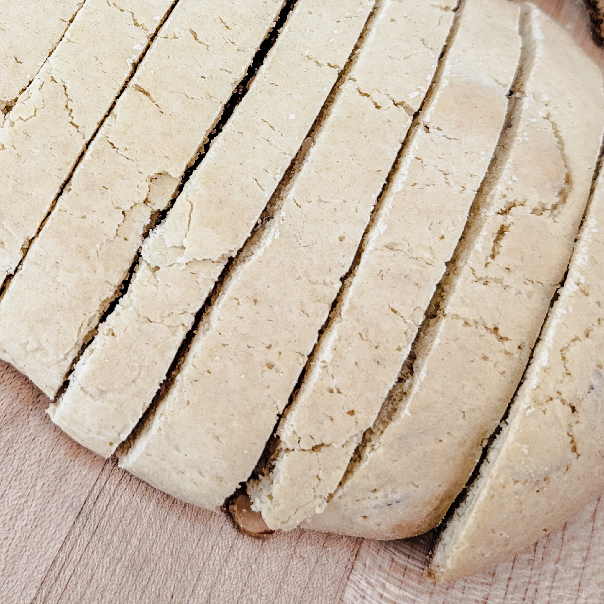 - When the loaves are cool enough to handle, slice them CAREFULLY into approximately ½” slices. Do this on the diagonal if you can. Take your time and enjoy this part. These cookies are delicate at this point and like to crumble sometimes. They should also be a little soft on the inside. Remember, we are putting these back into the oven. Use that serrated knife and saw gently.