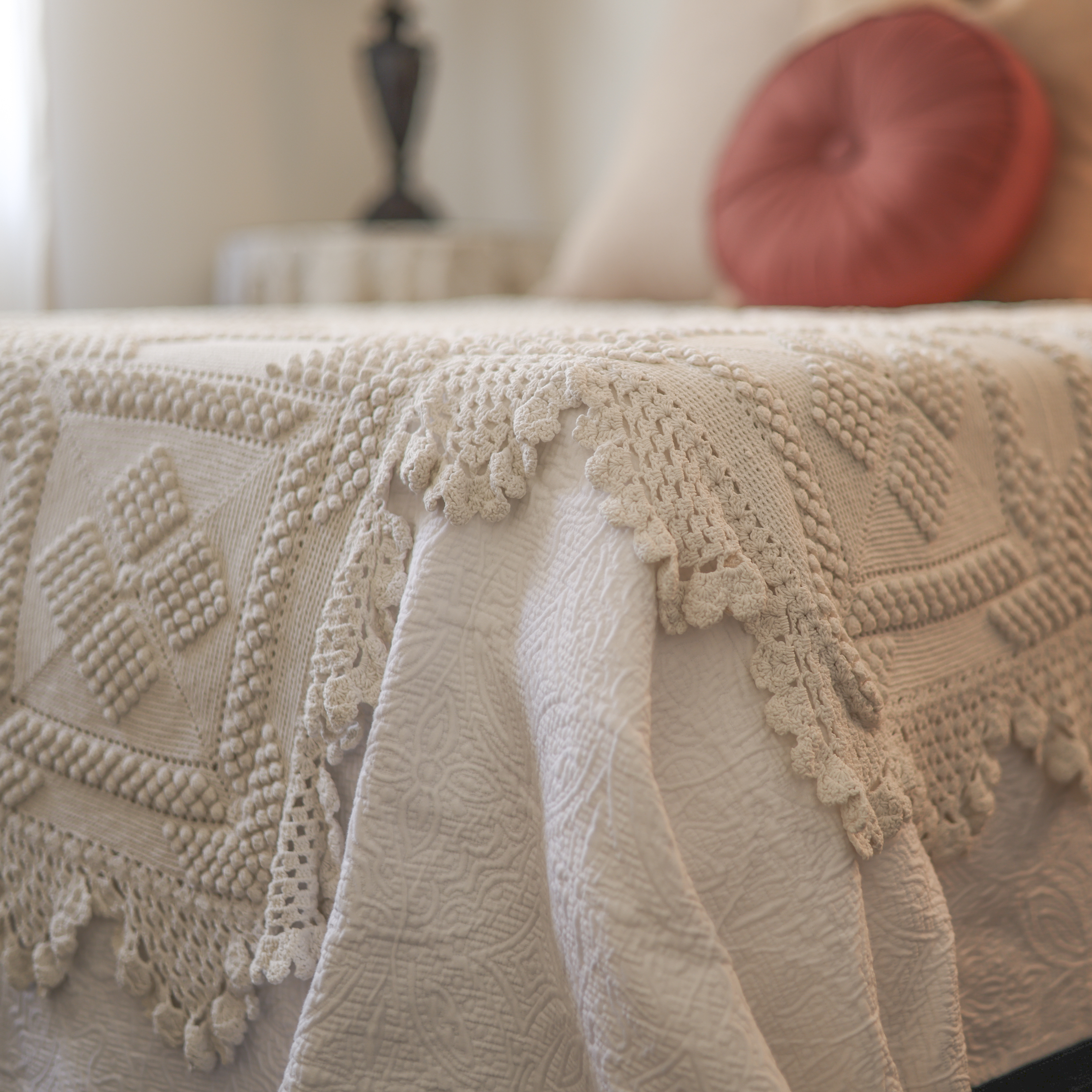 This little 10 x 10 bedroom has Grandma Celia’s hand crocheted bedspread and a little container she used. She did crochet it and she left us a couple of the beautiful blankets she made. Two hand embroidered towels and a little vintage bird completes a side table with a vase and flowers. Table throws are vintage handmade and used still everywhere I can use them. It makes the work of the past not wasted from my eyes. Beautiful hand work is hard to come by so I relish it and wonder about the memories it holds. Hopefully it will be around for generations to come.