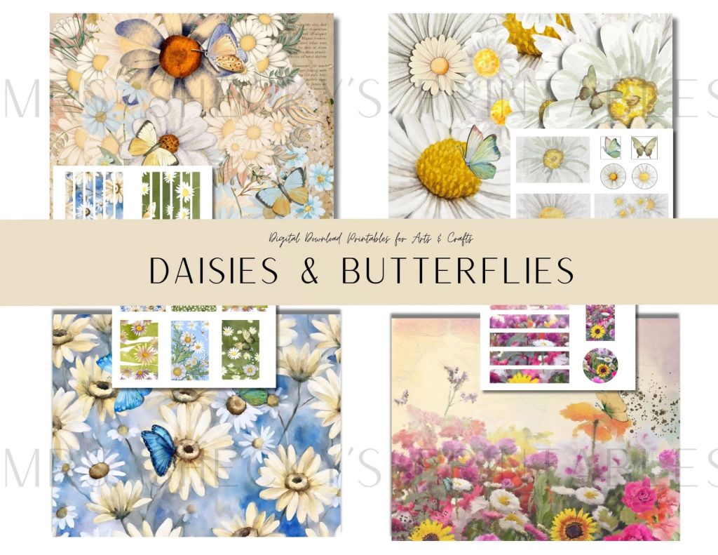 Mrs. Sheckys Etsy Store. Yup, working on the Etsy store. It is slow motion over there for sure but I like creating and have decided to keep it going for a bit hence, a new digi bundle is up. Daisies & Butterflies is my new digital printable bundle and it is ready instantly for spring paper crafting. I hope you like it.